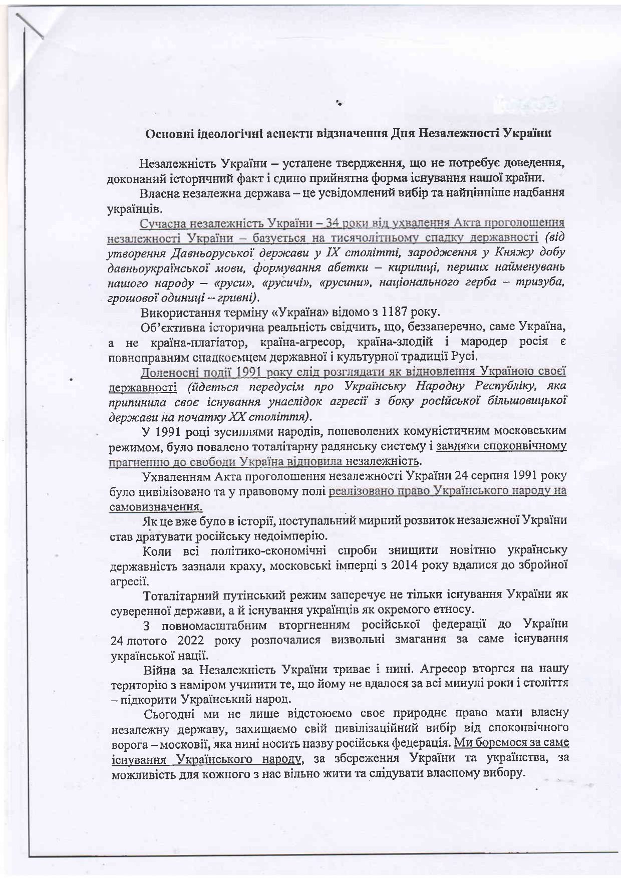 З нагоди Дня незалежності України